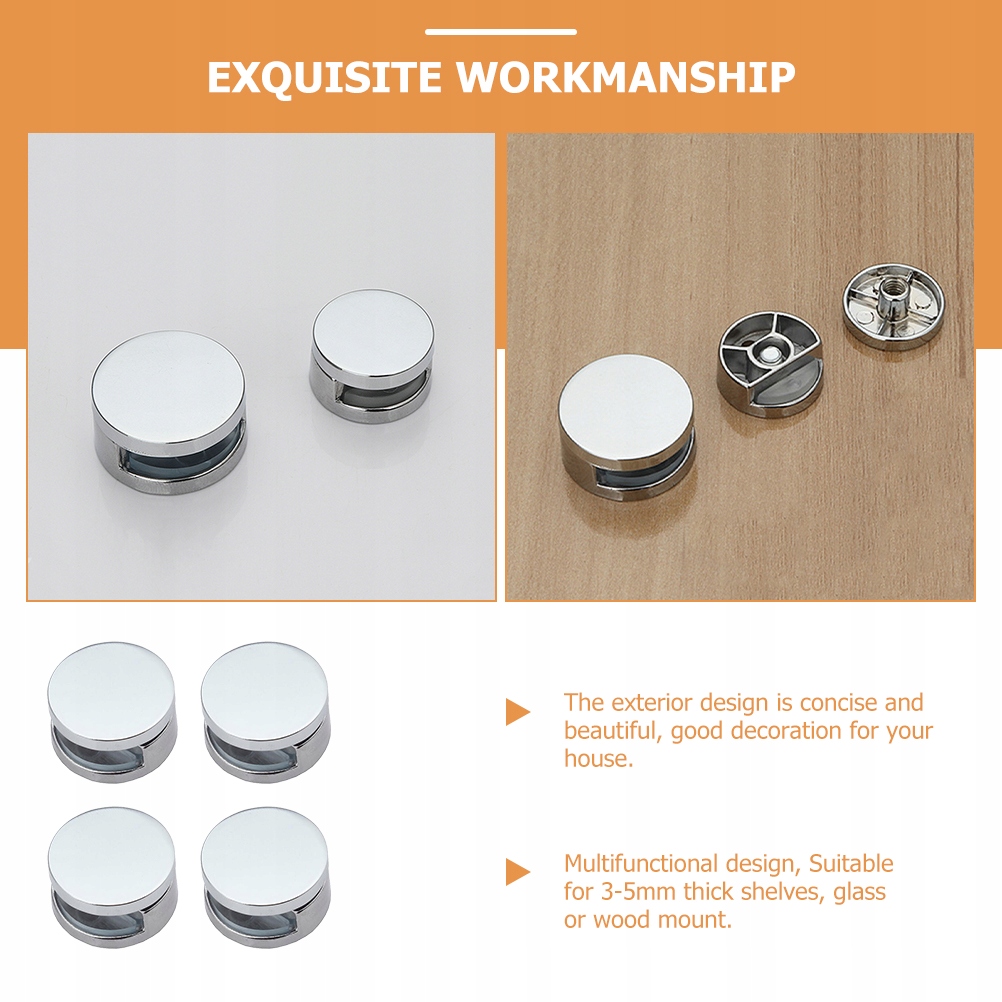 This product is a glass clamp, made of durable zinc alloy materials, chromium plating treatment, bright and beautiful. Multifunctional design, Suitable for 3-5mm thick shelves, glass or wood mount. It is simple in design, but very practical in use, give you a pleasant using experience.