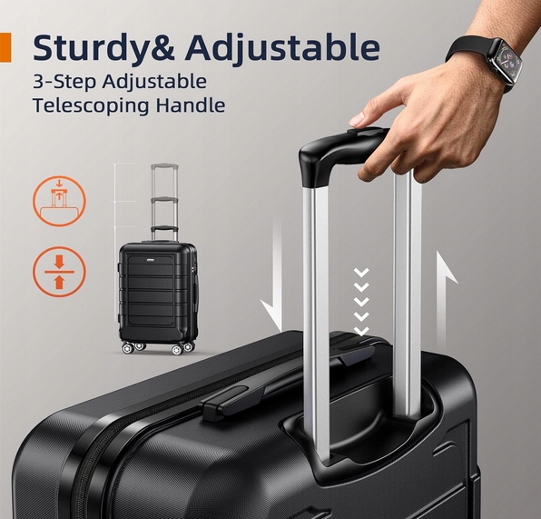 【3-stopniowa konstrukcja z drążkiem --- Zestaw walizek na kółkach】 Walizka podróżna na kółkach firmy SHOWKOO ma ergonomiczny, trzyczęściowy aluminiowy uchwyt teleskopowy, który umożliwia łatwe poruszanie się w małych przestrzeniach. Miękki materiał TPU na górnym i bocznych uchwytach zapewnia lepszą ochronę palców.