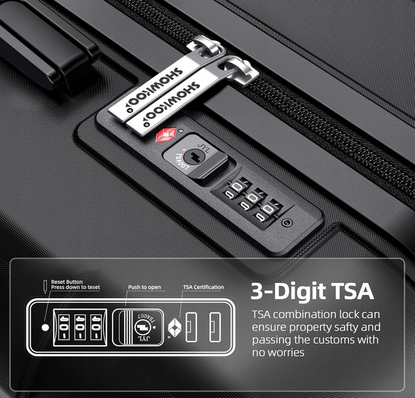 【Podróżuj bezpiecznie --- Zestawy bagażowe z zamkiem TSA】 Walizka SHOWKOO jest wyposażona w montowany z boku zamek TSA, dzięki czemu nie musisz się martwić o kontrolę bezpieczeństwa podczas odprawy celnej. Zamek TSA pozwala wyłącznie pracownikom TSA sprawdzić Twój bagaż bez uszkadzania zamka, dzięki czemu Twój bagaż jest bezpieczniejszy, a podróż wygodniejsza.