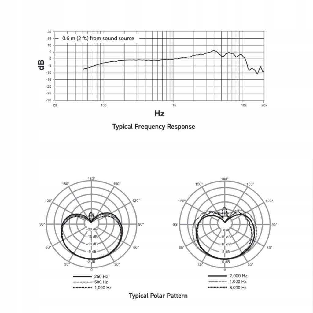 - Czułość: –54,0 dBV/Pa (2,00 mV) (1 Pa = 94 dB SPL)