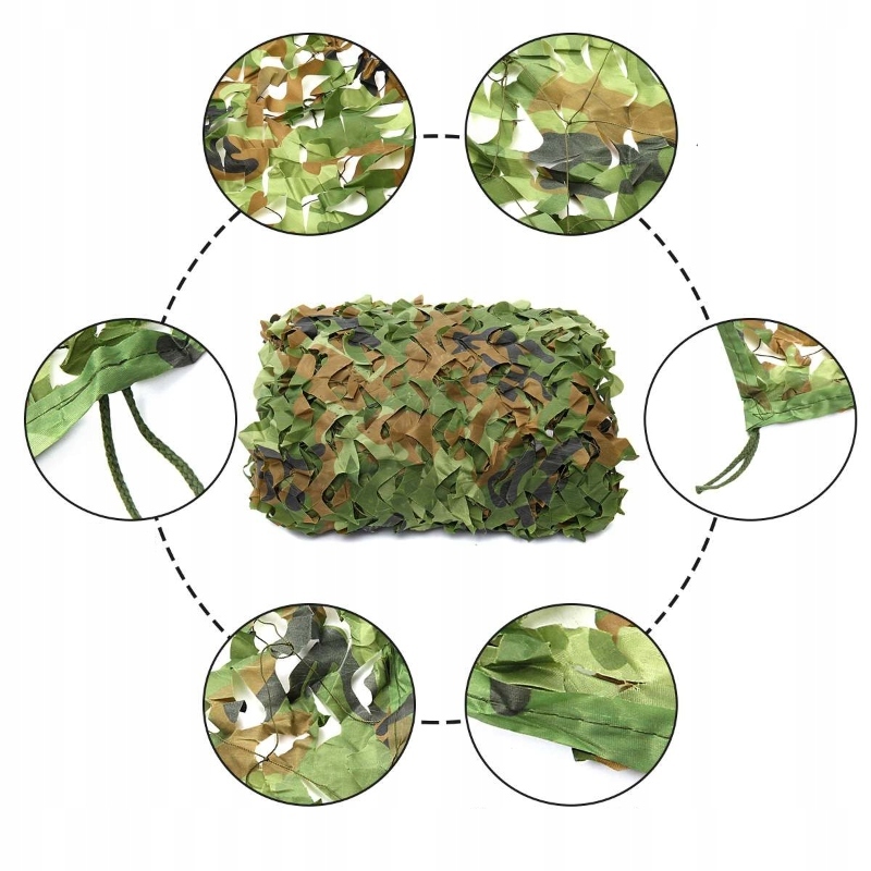 Siatka maskująca jest uniwersalna, może być używana jako kamuflaż na polowaniu, jako dekoracja wnętrz i ogrodów, jako akcesorium militarny i wiele więcej.