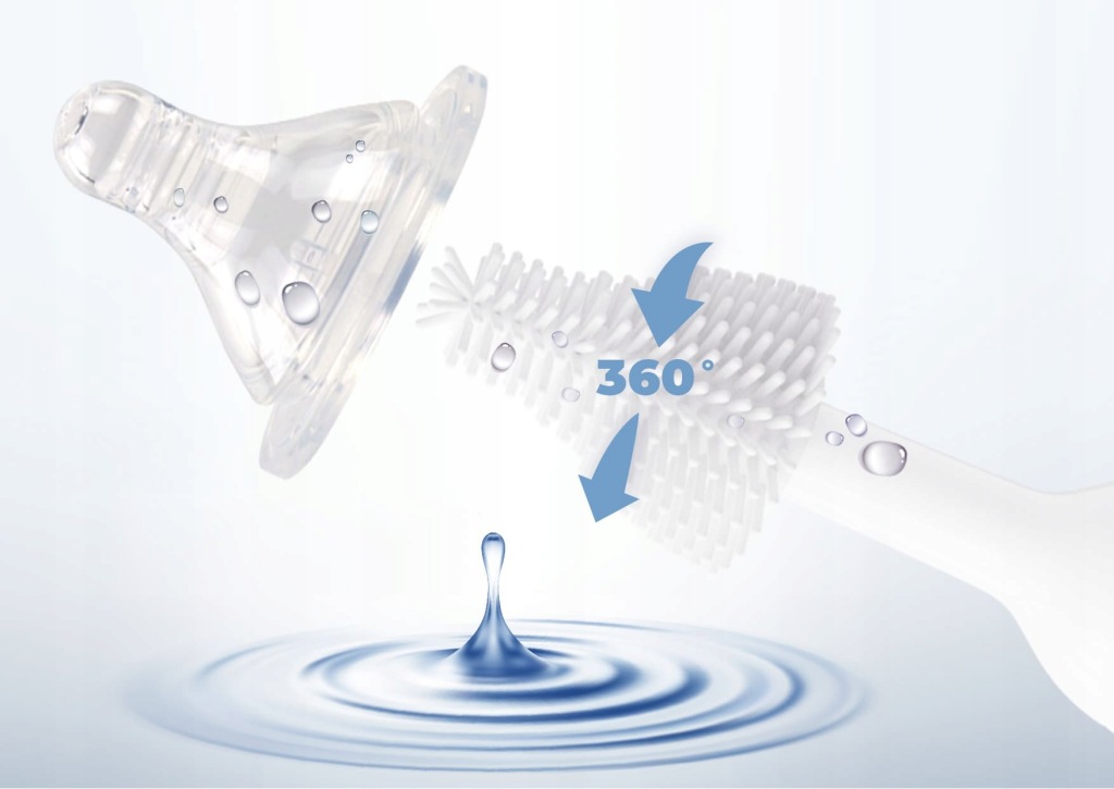 Resztki pokarmu stanowią źródło rozwoju bakterii, które mogą przedostać się do układu pokarmowego dziecka. Możesz się ich pozbyć, używając specjalnie wyprofilowanej końcówki, która idealnie pasuje do kształtu smoczka od butelki.