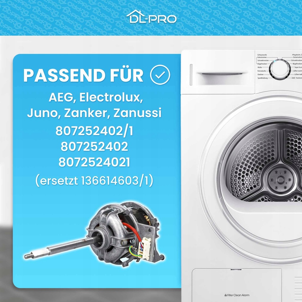 Napęd silnikowy suszarki bębnowej suszarki kondensacyjnej suszarki z pompą ciepła Zakres dostawy: 1 sztuka pasuje do: AEG Electrolux Juno Zanker Zanussi 807252402/1 (zastępuje 136614603/1) Pasuje do następujących marek/producentów: AEG Electrolux Juno Zanker Zanussi Faure Fors Husqvarna John Lewis Zoppas Cechy produktu: Materiał: stal nierdzewna Kolor: srebrny Możliwy nadruk artykułu: Nidec Typ DB085D50E00 190 V 240 Hz 01.86 3600 AC-EL P/N 807252402