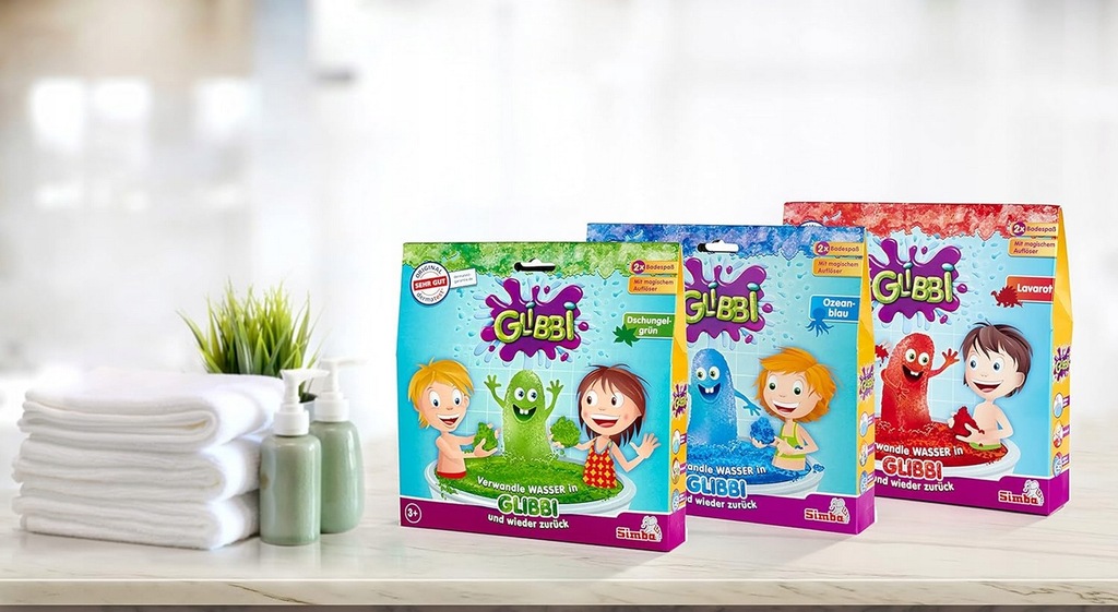 Śluzowata zabawa do wanny - z Glibbi woda zamienia się w żelową masę i zapewnia wyjątkowe doznania podczas kąpieli i pluskania: śliska, kolorowa i pełna zabawy.