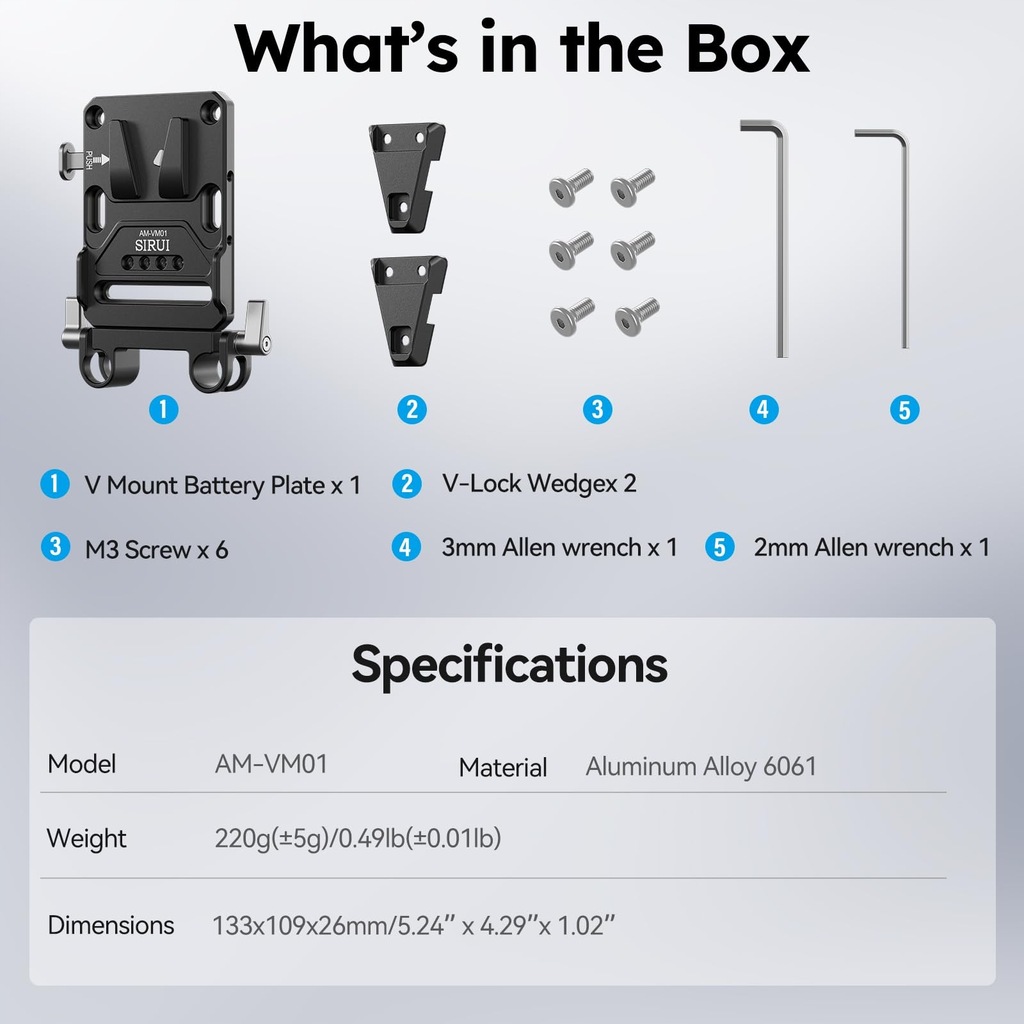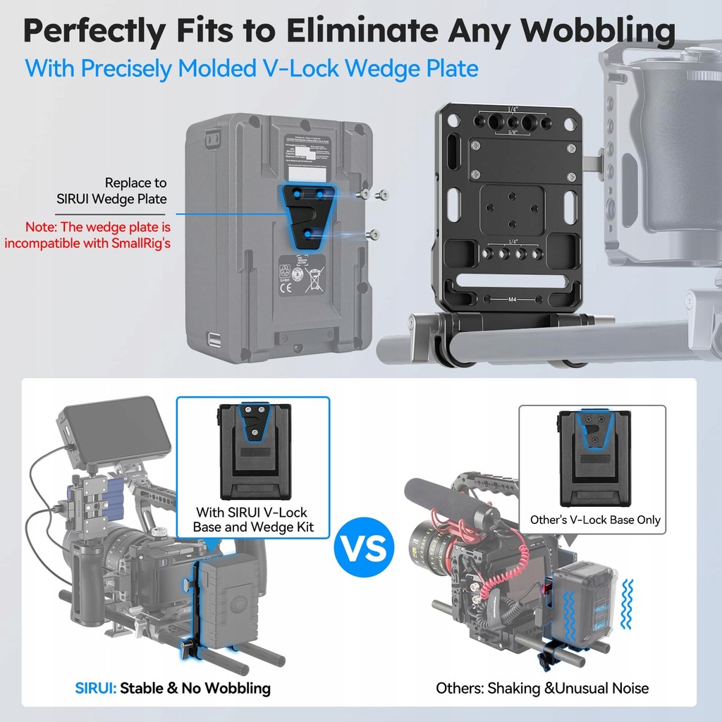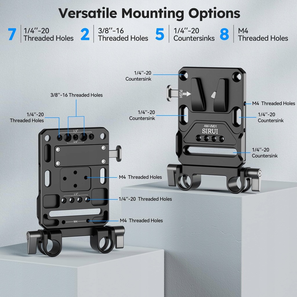 - Opis produktu: SIRUI V-Lock Base Station and Wedge Kit, Universal V Mount Battery Plate with Dual 15mm Rod Clamp for Camera Power Supply, Quick Release Set with Multi Mounting Points, AM-VM01