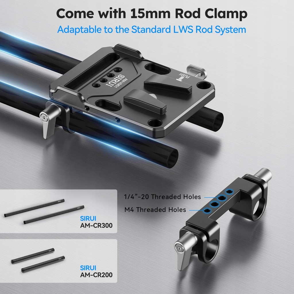 - punkt znaku wypunktowania: SIRUI V-Lock Base Station and Wedge Kit, Universal V Mount Battery Plate with Dual 15mm Rod Clamp for Camera Power Supply, Quick Release Set with Multi Mounting Points, AM-VM01