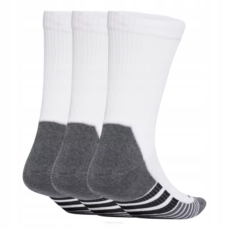Te białe skarpety tenisowe Adidas zapewniają doskonałą oddychalność dzięki technologii CLIMACOOL, która skutecznie odprowadza wilgoć.Wzmocnione strefy pod palcami i piętą zwiększają trwałość i komfort podczas intensywnego grania.Elastyczne ściągacze utrzymują skarpetę na miejscu bez ucisku.To niezawodny wybór dla graczy ceniących wygodę, wsparcie i świeżość przez cały mecz.