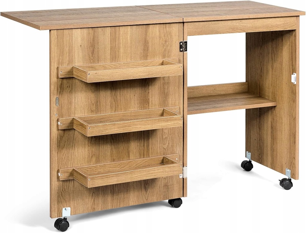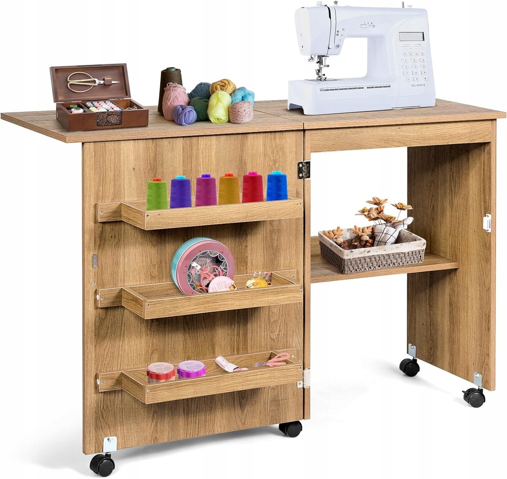 Jest to stolik pod maszynę do szycia. Ten stół do szycia jest biały, ten kolor daje romantyczne uczucie, które jest odpowiednie dla każdej rodziny. Ten stół do maszyny do szycia jest wykonany z wysokiej jakości płyty MDF, więc szafka do szycia jest dobrej jakości, trwała i niełatwa do uszkodzenia. Powierzchnia stołu do maszyny do szycia pokryta jest farbą NC, dzięki czemu szafka do szycia nie będzie się łatwo brudzić. Do czyszczenia szafki do szycia wystarczy wilgotna szmatka. Ten stół do maszyny do szycia jest składany. Składany blat stołu zapewnia dodatkową przestrzeń roboczą i jest zabezpieczony mocnym, gładkim zawiasem.