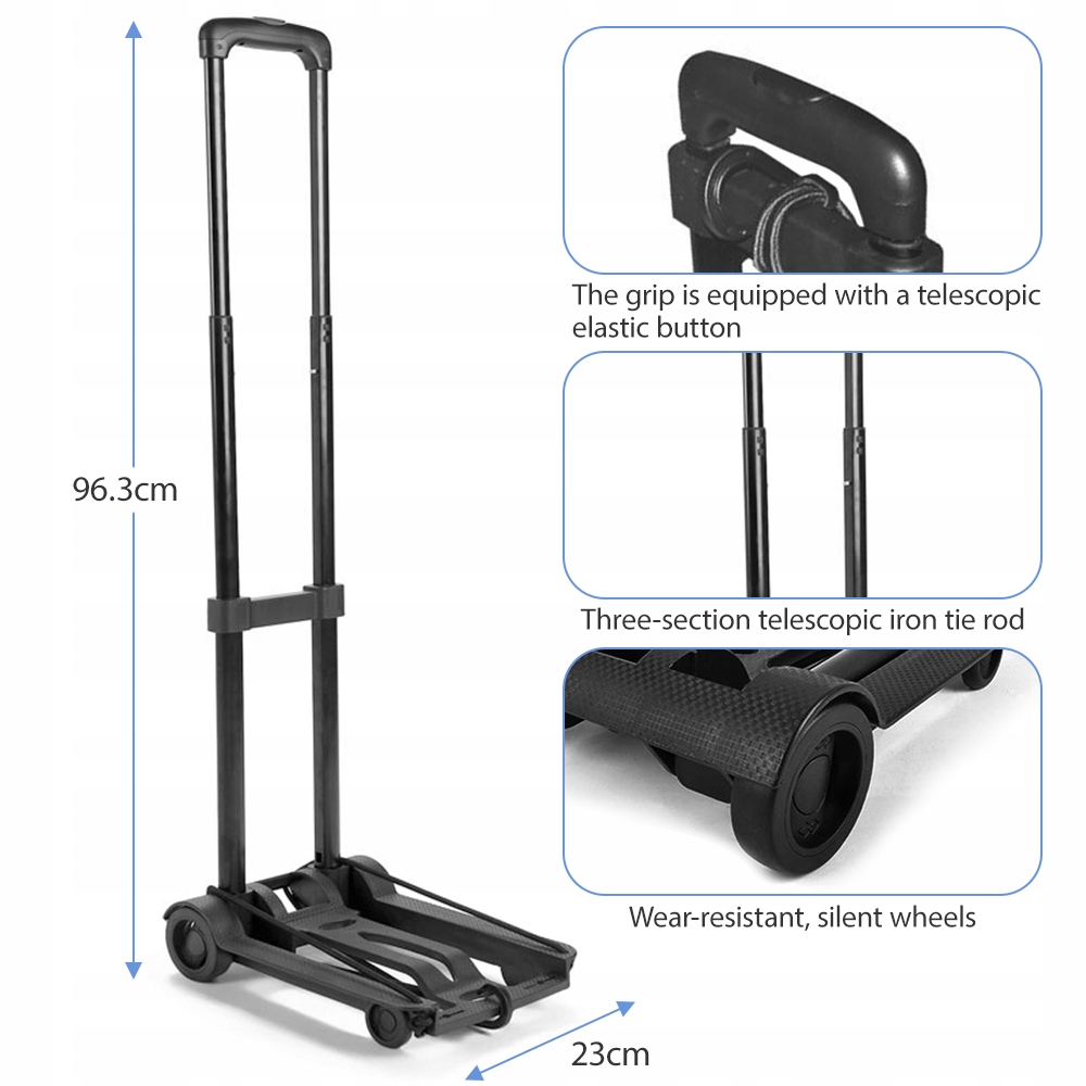 Składany wózek to przenośne narzędzie do jasnych przedmiotów, takich jak przeprowadzka/ podróżowanie/ biuro/ szkoła/ zakupy.