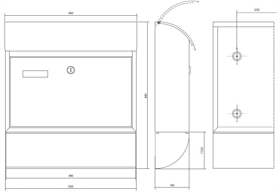 - Abmessung Briefkasten BxHxT (mm): 400 x 330 x 100