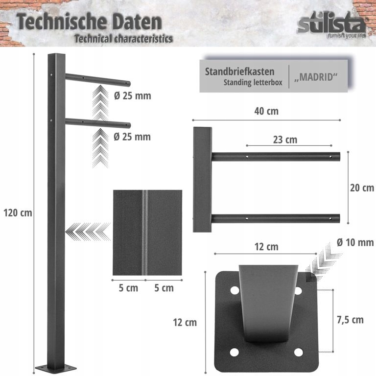 Skrzynka na listy stojąca Madrid, czarna, 1 noga