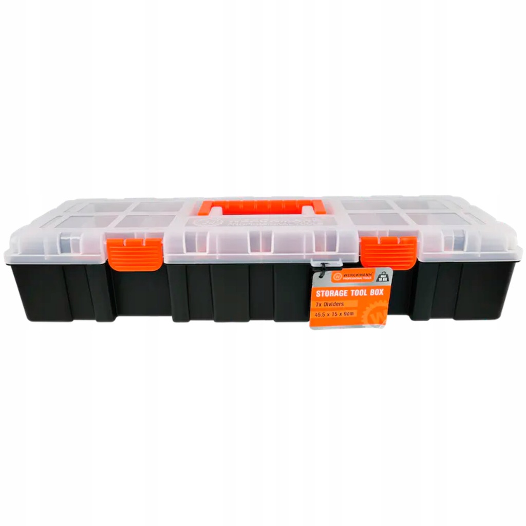 Skrzynka na narzędzia Werckmann zapewni miejsce na wszystkie śruby, gwoździe i małe narzędzia. Ten praktyczny organizer został wyposażony w 7 równych przegród, które można dowolnie dopasować do swoich potrzeb poprzez wyjęcia poszczególnych przegród.