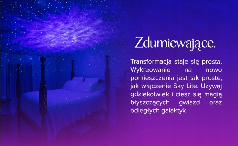 Kojące efekty zorzy polarnej stworzą relaksującą i zmysłową atmosferę w każdym miejscu. Dzięki temu Sky Lite to wyjątkowy prezent zarówno dla dorosłych, jak i dla dzieci.