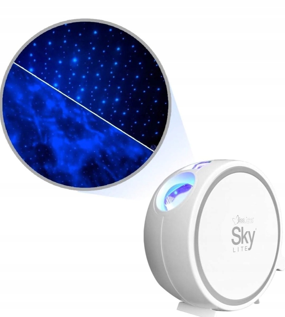 Sky Lite w mgnieniu oka wyświetli niebo pełne poruszających się NIEBIESKICH gwiazd na tle zmieniającej się NIEBIESKIEJ mgławicy.