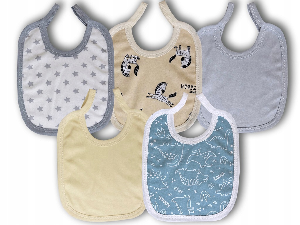 ŚLINIAK niemowlęcy WZOROWANY bawełna ZAPINANY na napy REGULOWANY dinozaury