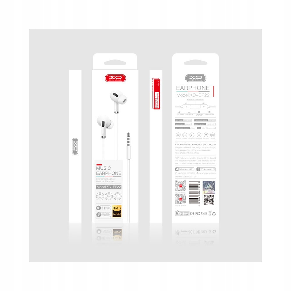 CECHY PRODUKTU XO słuchawki przewodowe EP22 jack 3,5mm dokanałowe białe