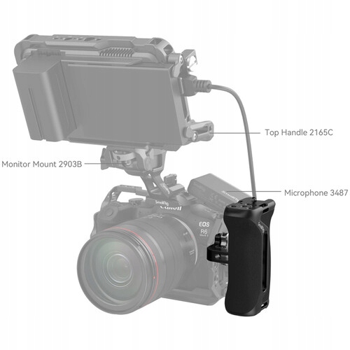 W zestawie znajdują się dwie śruby 1/4"-20 ze stali nierdzewnej, otwór gwintowany 1/4"-20, otwór ustalający 1/4"-20, otwór na pasek, zimna stopka do mocowania monitora Smallrig 2905, głowica kulowa Magic Arm 3875, lampa wideo LED 3286, mikrofon 3468 itp.