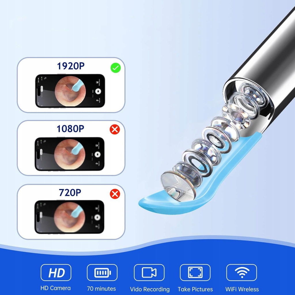 【Rozdzielczość HD 1920P】 – Zestaw do usuwania woskowiny jest wyposażony w kamerę HD 1920P, która pozwala wyraźnie zobaczyć strukturę uszu. Ten okuloskop wykorzystuje przeciwmgielną i przeciwpyłową, aby sprawdzić obraz w rozdzielczości Full HD 1920P.
