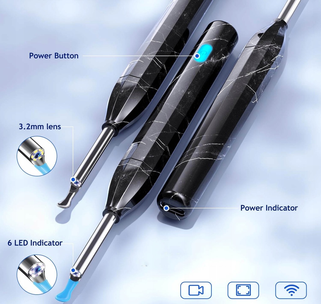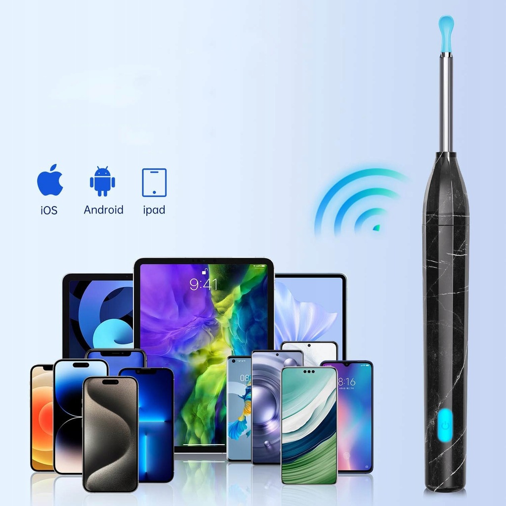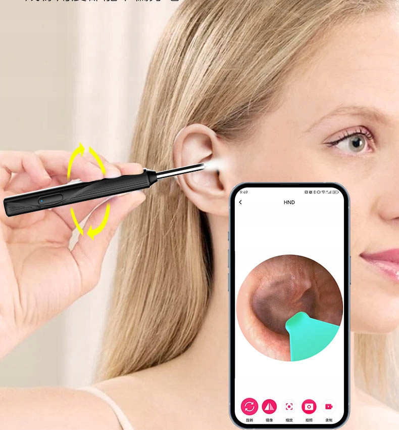 【Inteligentna aplikacja wizualna】 – Bezprzewodowo i bezpośrednio podłącz obsługę i aplikację, aby umieścić woskowinę w trzech krokach. Narzędzie do usuwania woskowiny wideo obsługującego robienie zdjęć i nagrywanie plików z szybkością transferu 20 sekund na sekundę, tworzących filmy bez opóźnień. Aparat nauszny jest używany z systemami iOS, iPadOS i Android.