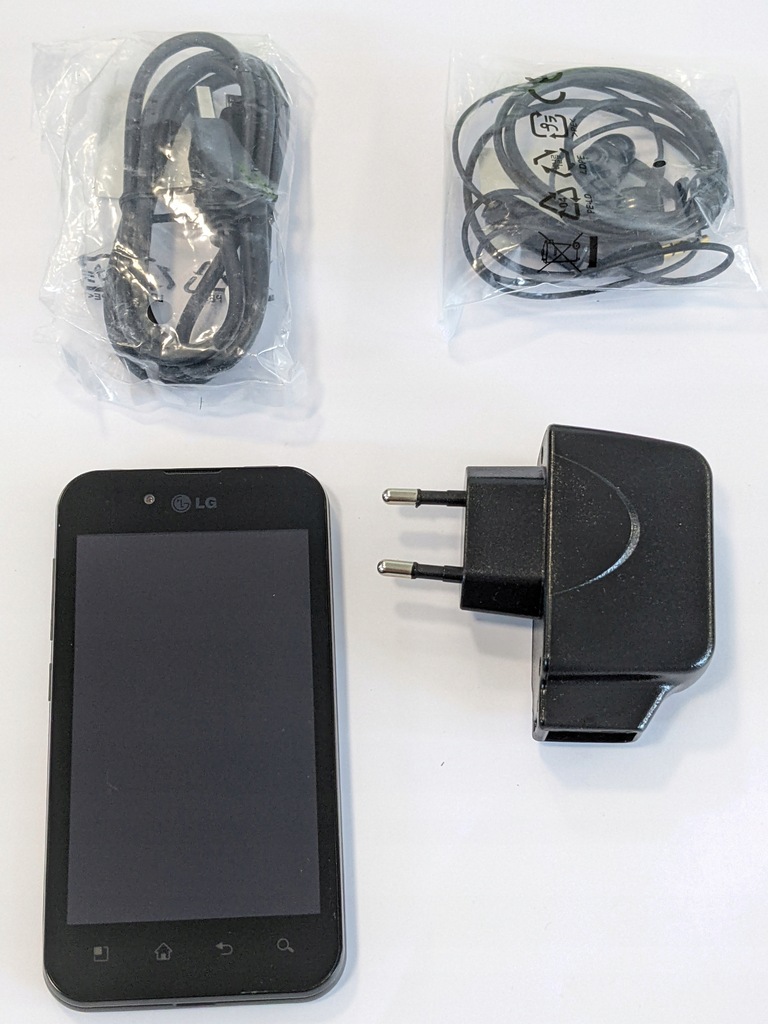 W zestawie znajduje się smartfon, ładowarka, kabel USB oraz słuchawki