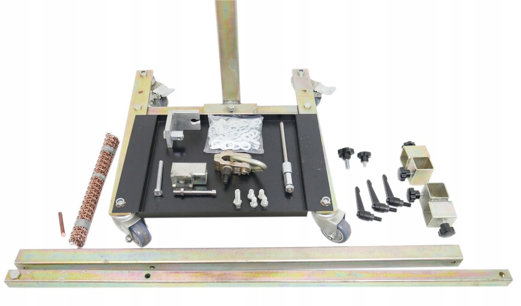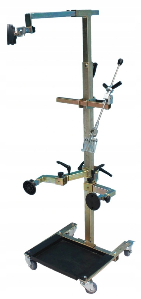 ✅ Szybkie prostowanie karoserii boku (i nie tylko) opiera się na pionowej belce, wyposażonej w mobilny wózek, na którym regulowane, gumowe wsporniki podparte o wzmocnione elementy karoserii w pobliżu miejsca naprawy. Następnie odbywa się wyciąganie wgniecenia za pomocą śruby skierowanej na obszar naprawy.