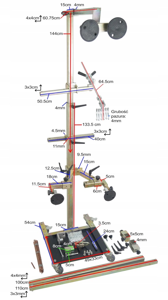 - ✔️ Regulowane wsporniki umożliwiają podparcie bez uszkodzeń elementów podpieranych.