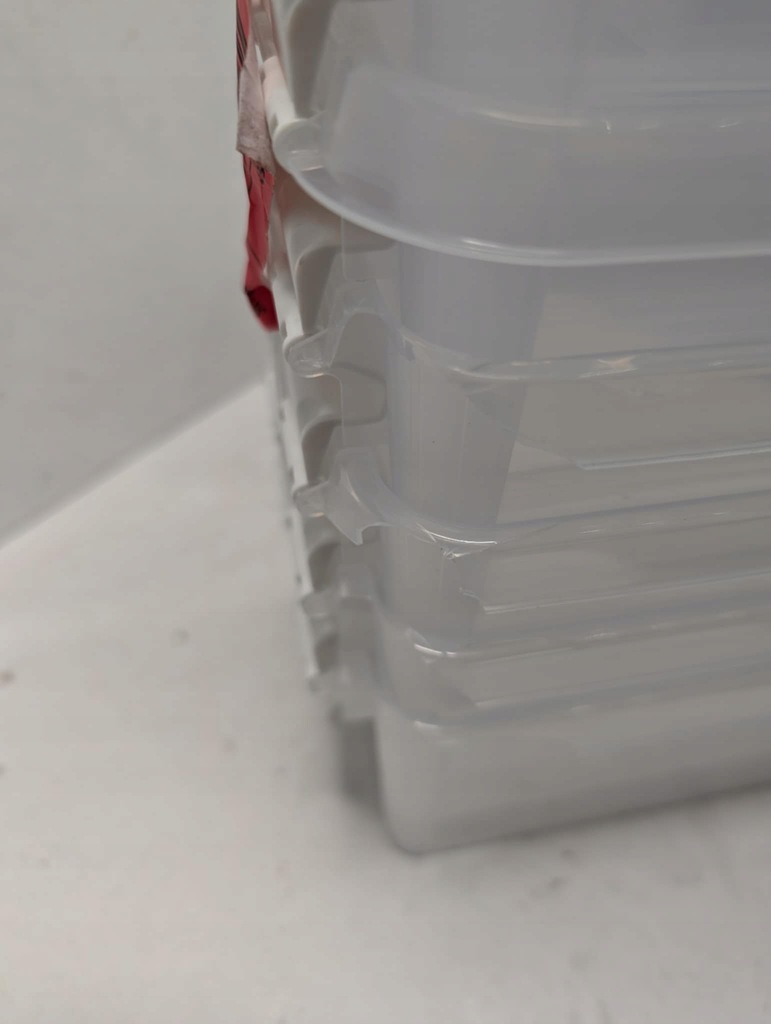 zalecamy zwrócić uwagę na zdjęcia ponieważ te przedstawiają delikatne uszkodzenie na narożnikach paru sztuk pojemników które powstało podczas ekspozycji.