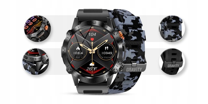 Dzięki sensorowi możesz w każdej chwili zmierzyć lub wykonać pomiar: ciśnienie krwi, tętno lub saturację - zawartość tlenu we krwi w swoim organizmie. Kontroluj wyniki podczas każdej aktywności fizycznej. Niezależnie czy jeździsz na rowerze, biegasz, czy też po prostu jesteś w pracy lub odpoczywasz. Twój smartwatch GRAVITY stanie się osobistym asystentem dbającym o twoje zdrowie każdego dnia.