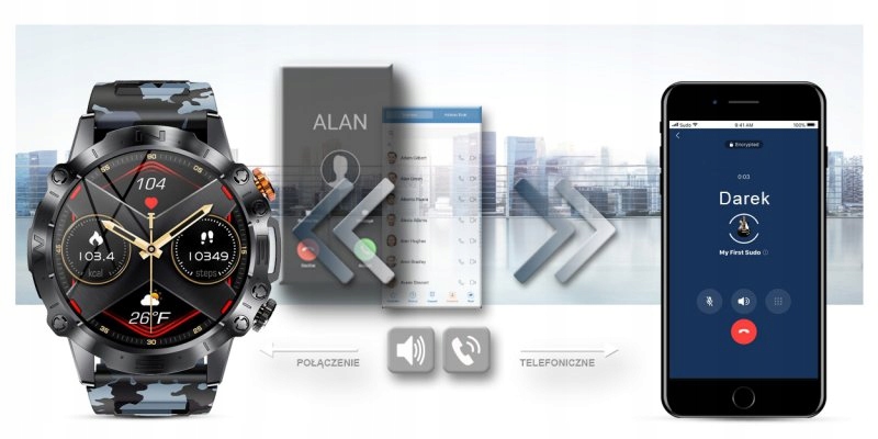 Ten smartwatch możesz połączyć ze swoim Smartfonem. Kompatybilność z systemem Android 5.0 i nowszy oraz iOS 8.0 i nowszy. Oznacza to, że smartwatch połączy się ze wszystkimi telefonami na systemie ANDROID i iOS.