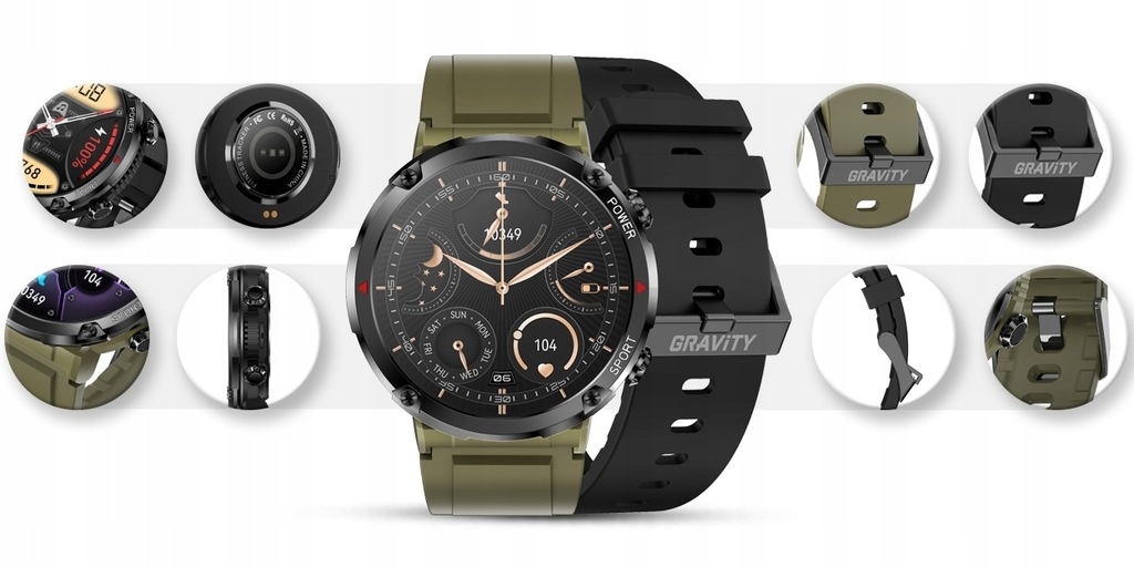 Smartwatch Gravity GT21-7 + Czarny Pasek Silikonowy