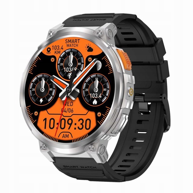 Wytrzymała metalowa koperta, mineralne i hartowane szkło, ekran dotykowy 1,85 cala o rozdzielczości 360*360 pikseli, funkcja rozmowy, sterowanie odtwarzaczem muzyki, mnóstwo trybów sportowych, mocna bateria, latarka.