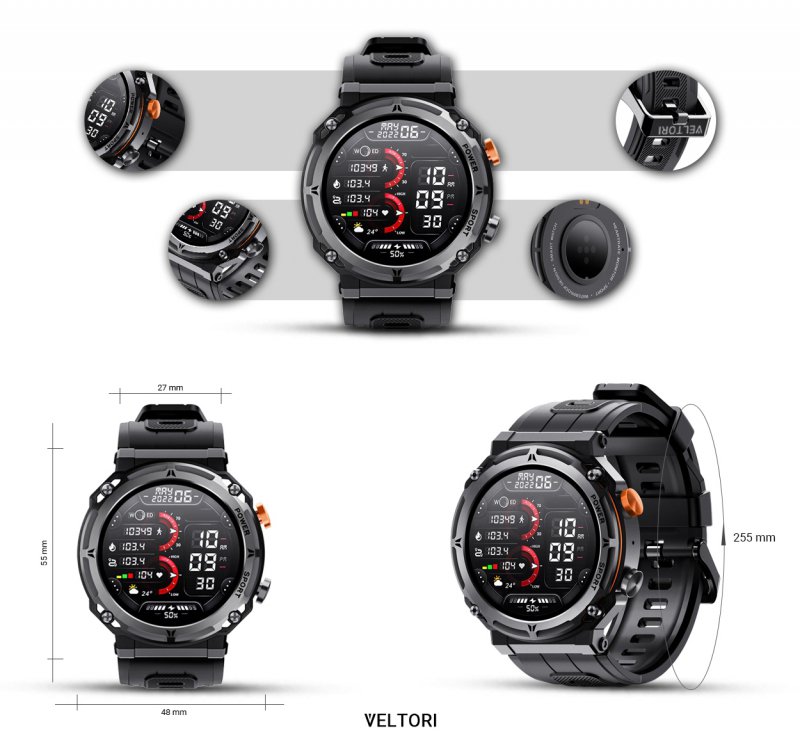 Smartwatch Veltori VT130-1 Czarny Pasek Silikonowy