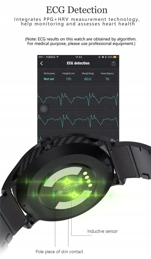 * Zegarek nie jest urządzeniem medycznym i nie może w pełni zastąpić elektrokardiografu. Pomiar jest zbliżony do faktycznego.