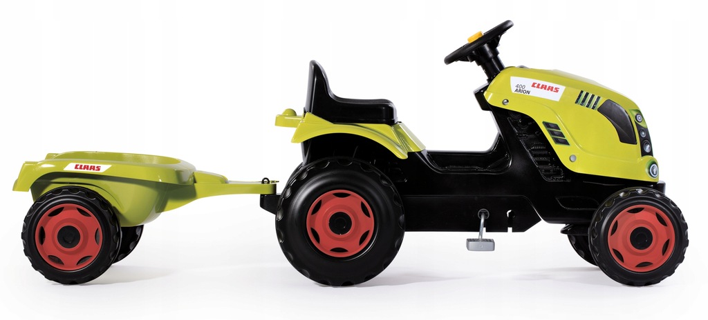 Traktor XL na pedały z przyczepą został stworzony przez powszechnie znaną i cenioną za wysoką jakość produktów firmę Smoby. Traktor ten to jeździk skierowany głównie do chłopców w wieku 3-6 lat. Traktor jest w kolorze zielono-czarnym, a został stworzony z materiałów o wysokiej wytrzymałości i odporności na ścieranie, dzięki czemu będzie dzieciom służyć przez długi czas, zapewniając mnóstwo zabawy. Jeździk ten rośnie wraz z dzieckiem, dzięki regulacji odległości siedziska od kierownicy, zapewniając komfort i wygodę zabawy dzieciom w różnym wieku. Traktor XL wyposażony został w: