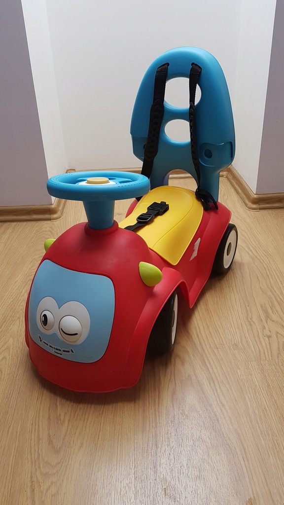 - Zabawkę charakteryzuje ładna, żywa kolorystyka i wysoka jakość. Siedzisko jest wygodne, posiada wysokie oparcie, podtrzymujące plecki dziecka i szelki.