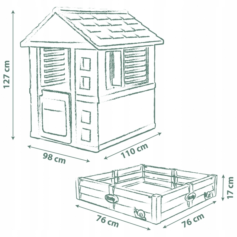 Smoby Life Domek Ogrodowy Z Piaskownicą to wspaniałe miejsce do odkrywania, eksperymentowania i wspólnej zabawy. Dzięki połączeniu domku z piaskownicą lub mini ogrodem, maluchy mogą rozwijać swoją wyobraźnię i cieszyć się aktywnością na świeżym powietrzu. To idealne miejsce do zabaw w dom, restaurację czy sklep, a także do budowania zamków z piasku lub sadzenia roślinek. Przestronny domek został zaprojektowany z myślą o wszechstronnych aktywnościach - od zabaw tematycznych po pierwsze doświadczenia ogrodnicze.