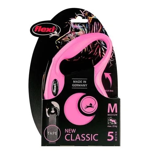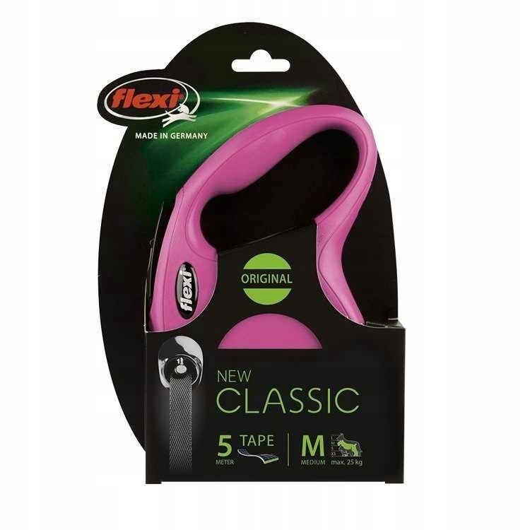 Smycz automatyczna FLEXI NEW CLASSIC M 5 m - taśma różowa