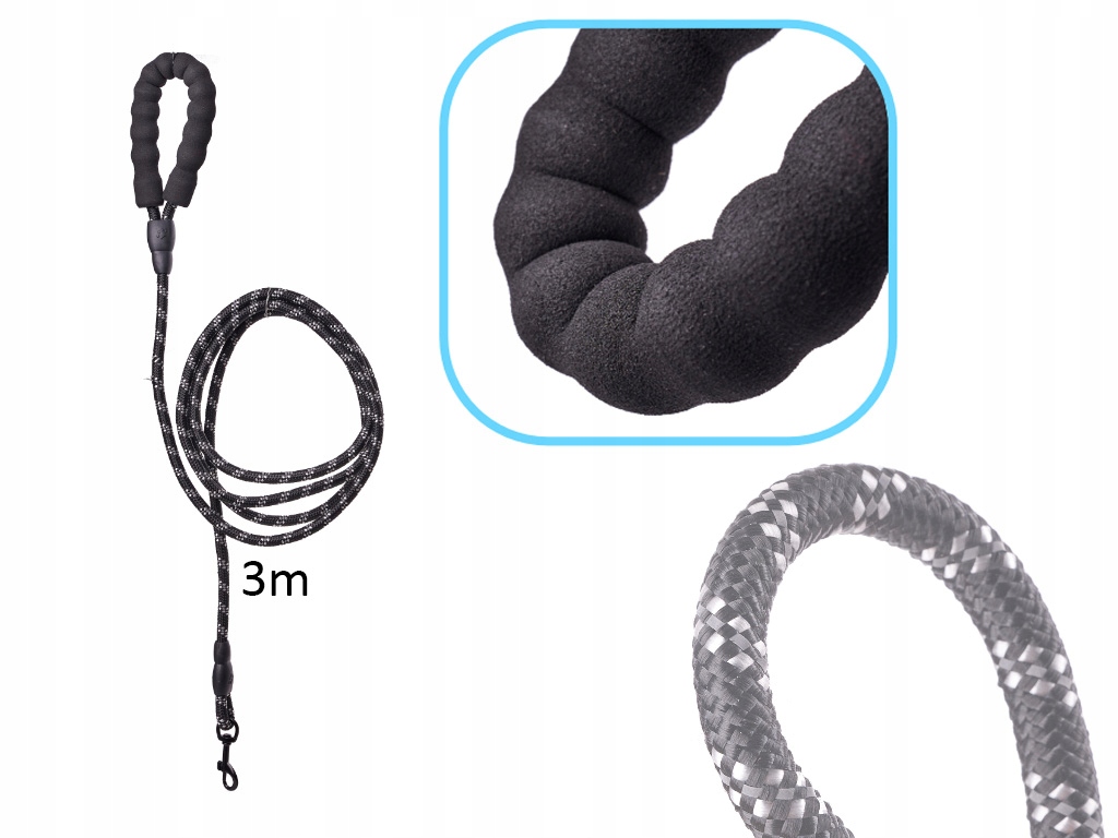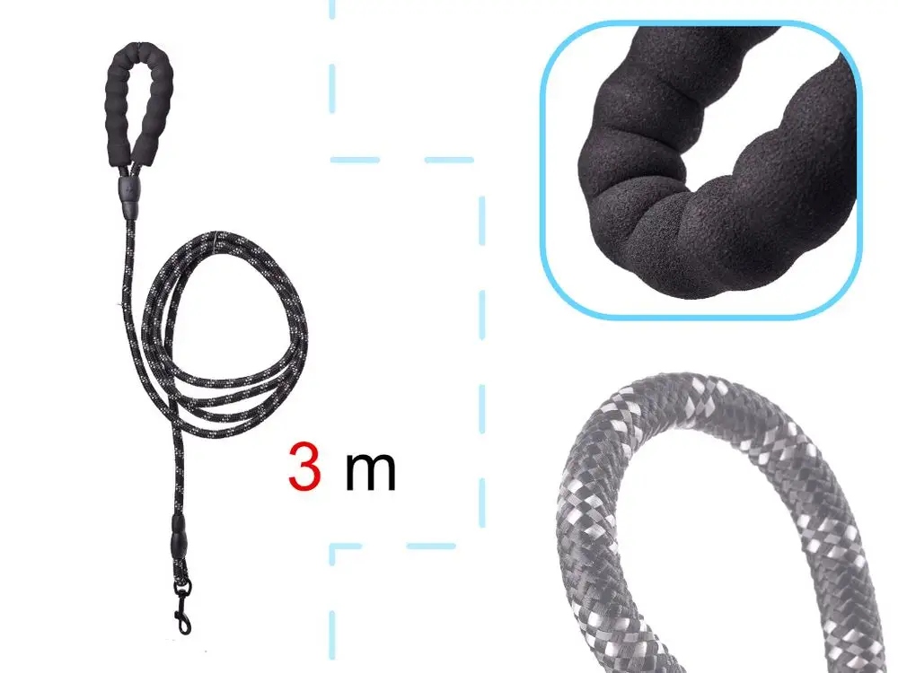 Gruba lina o długości 300cm sprawi że smycz nie będzie się plątać, a Ty uzyskasz pełną kontrolę nad swoim pupilem. 3m to doskonała długość aby uzyskać balans między wolnością psiaka, a kontrolą właściciela.