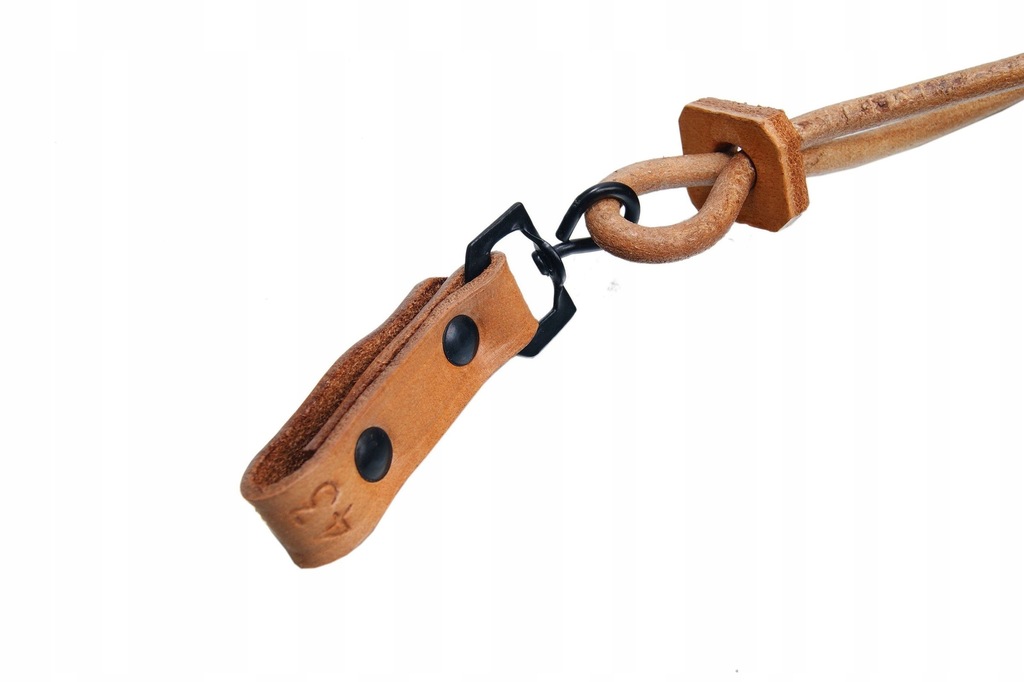 Smycz wykonana jest ze skóry, okucia metalowe.