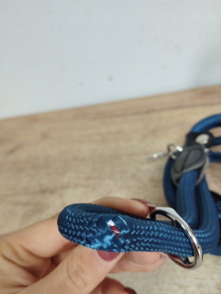 Granica przyczepności tego paska zapobiega wywieraniu nadmiernego nacisku na szyję. Blokada zapobiega zgubieniu smyczy przez psa.