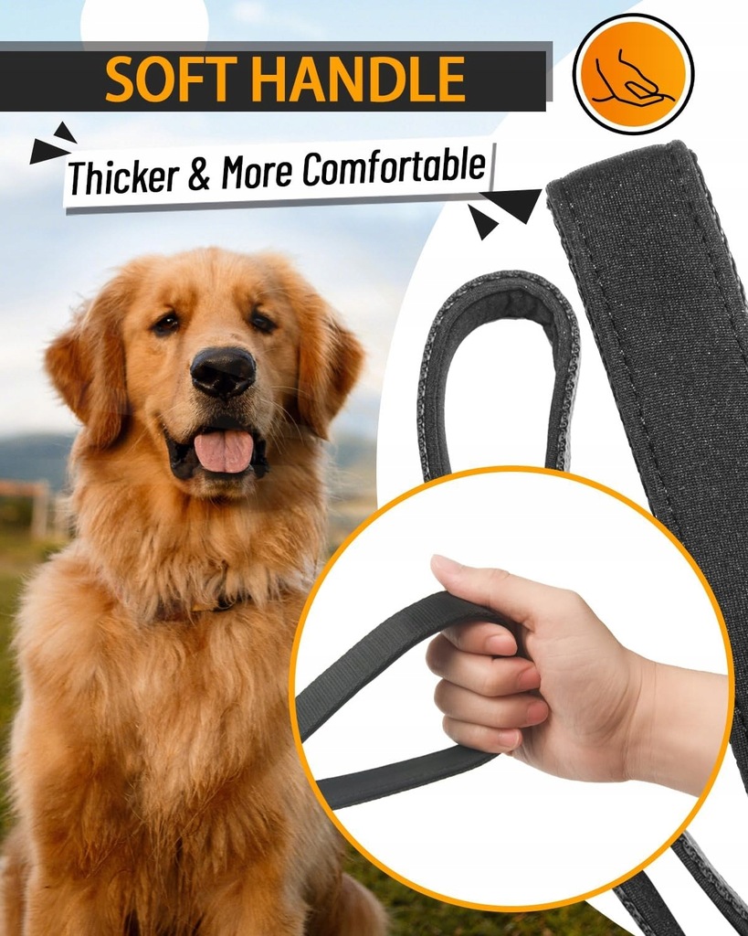 ✅Miękko wyściełana rączka: 3,5 mm wygodny, grubszy pasek na rękę smyczy treningowej dla psów zapewnia lepszą kontrolę i ochronę psa. Cała smycz dla psa jest pokryta miękką warstwą ochronną, co pozwala owinąć ją wokół ramienia, dłoni lub nadgarstka, aby dostosować jej długość i kontrolować intensywność.