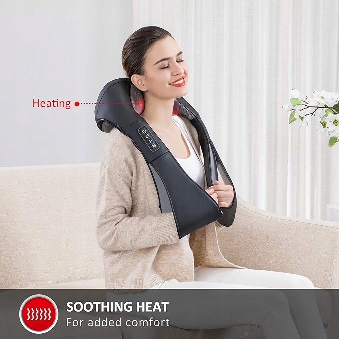 - OPCJONALNE CIEPŁO: Masażer pleców Shiatsu ma opcjonalną funkcję ogrzewania podczerwienią, która zapewnia kojące ciepło, poprawiające krążenie krwi i łagodzące bóle mięśni, skurcze i napięcie