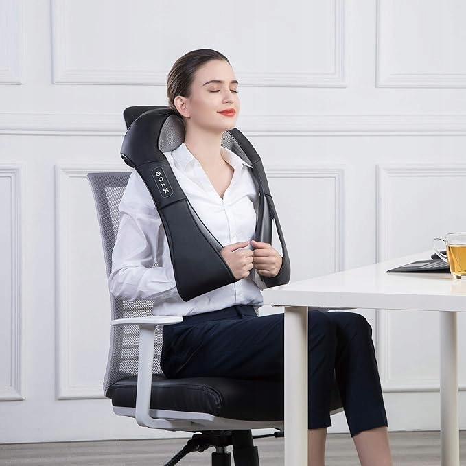 - MASAŻER SHIATSU KARKU GRZANIA 6D DO MIĘŚNI CZWOROBOCZNYCH, RAMION I SZYI