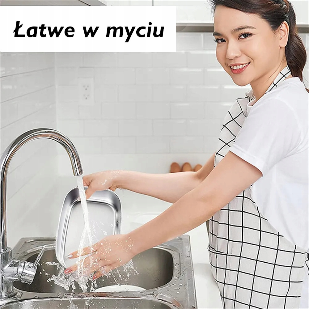 Naczynie jest bardzo proste w czyszczeniu blaszkę jak i pojemniki ze środka można umyć w zmywarce, czy też ręcznie.
