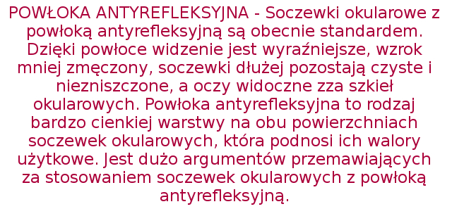 - ISTNIEJE MOŻLIWOŚĆ WYKONANIA SOCZEWEK Z MOCAMI CYLINDRYCZNYMI DO +4,00 dpt