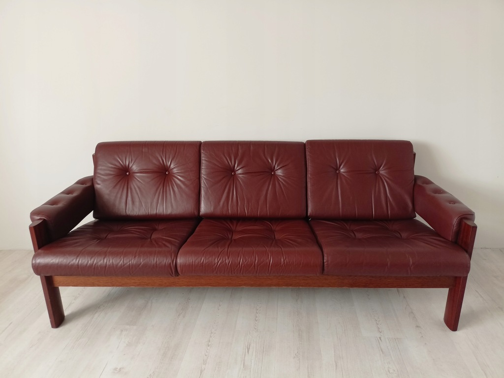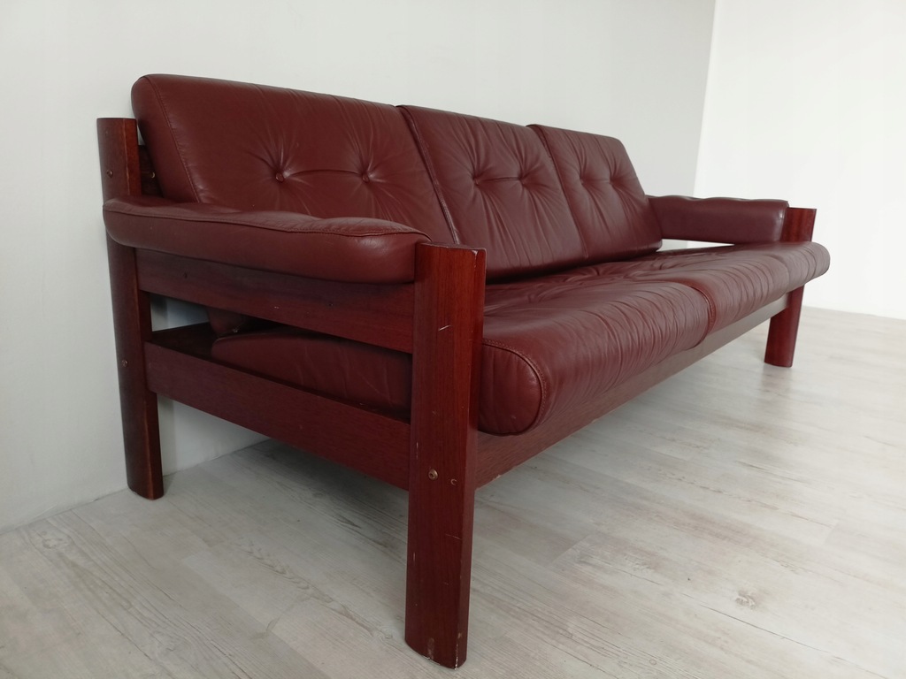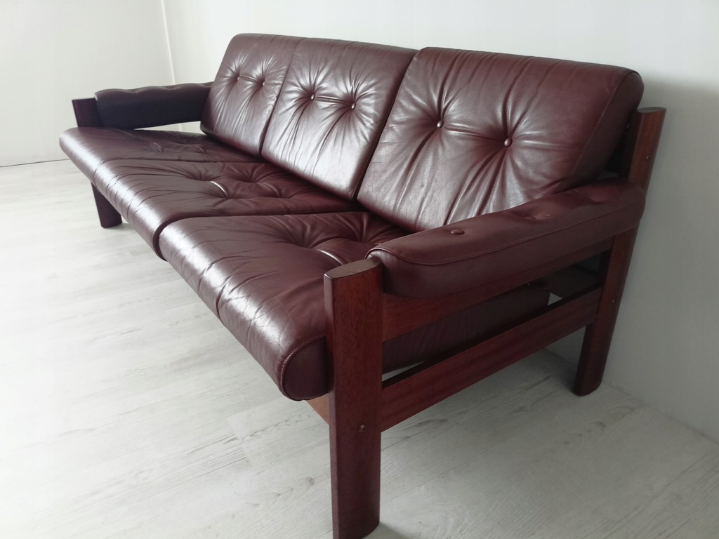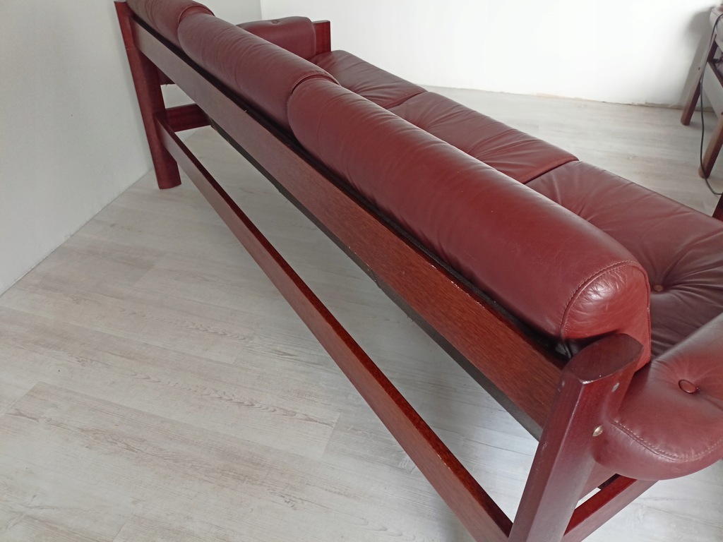 Rama wykonana z litego drewna tekowego, tapicerka jest skóry naturalnej.