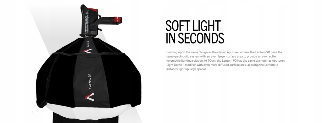 Aputure Lantern 90 to wszechstronny modyfikator swiatla o charakterystycznym ksztalcie lampionu. Softbox wyposazono w uniwersalne mocowanie Bowens kompatybilne z setkami lamp dostepnych na rynku. Jego srednica po rozlozeniu wynosi az 90 cm. Dzieki konstrukcji typu parasolka, modyfikator moze byc gotowe do pracy w ciagu kilku sekund. Specjalna oslona pozwoli dowolnie modelowac swiatlo i precyzyjnie dostosowac kat jego padania do potrzeb Twoich kadrów. W zestawie nie zabraklo torby, która ulatwi przechowywanie i transport.