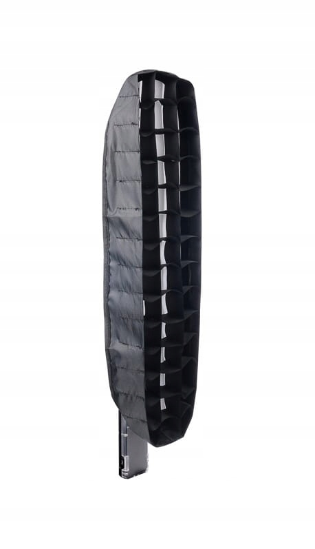 Gdy chcemy ukierunkować rozproszone światło, należy użyć dołączonego do zestawu grida, czyli tzw. plastra miodu. Dzięki niemu mamy większą kontrolę, redukując kąt rozproszenia, tworzymy bardziej punktowe oświetlenie.