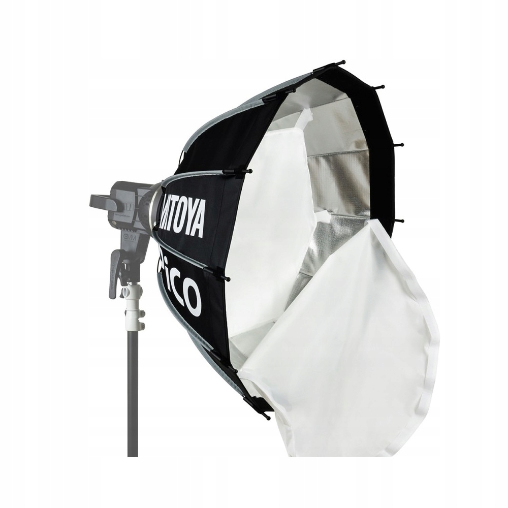 MITOYA PICO został wyposażony w system szybkiego rozkładania oparty na drutach poprowadzonych na zewnątrz czaszy. Każdy z nich jest naprężany niezależnie i blokowany za pomocą zatrzasków. Przeniesienie konstrukcji rozporowej na zewnątrz sprawia, że wnętrze czaszy pozostaje puste i żaden element nie przesłania palnika lampy. Dzięki temu możliwe jest uzyskanie wyjątkowo równomiernego oświetlenia pozbawionego cieni, co jest szczególnie istotne podczas tworzenia video. Wnętrze czaszy jest wyłożone srebrną, odbijającą tkaniną, której zadaniem jest dodatkowe odbicie i wzmocnienie światła.