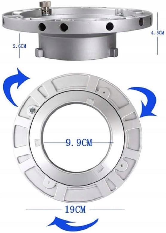 - Softbox wyposażony jest w pierścień montażowy typu Bowens. Dzięki temu może być stosowany z produktami innych marek, w których zastosowano to samo mocowanie